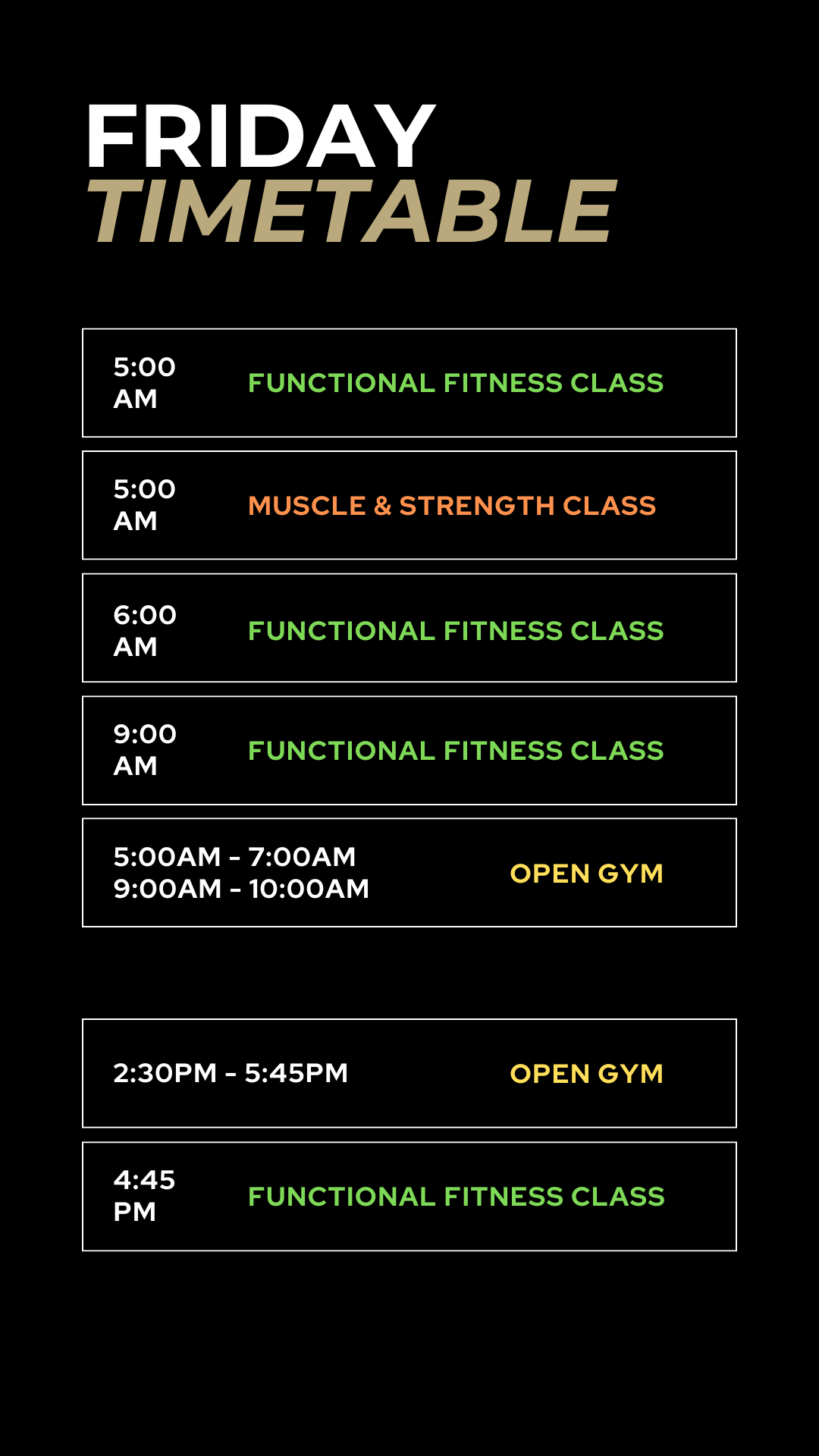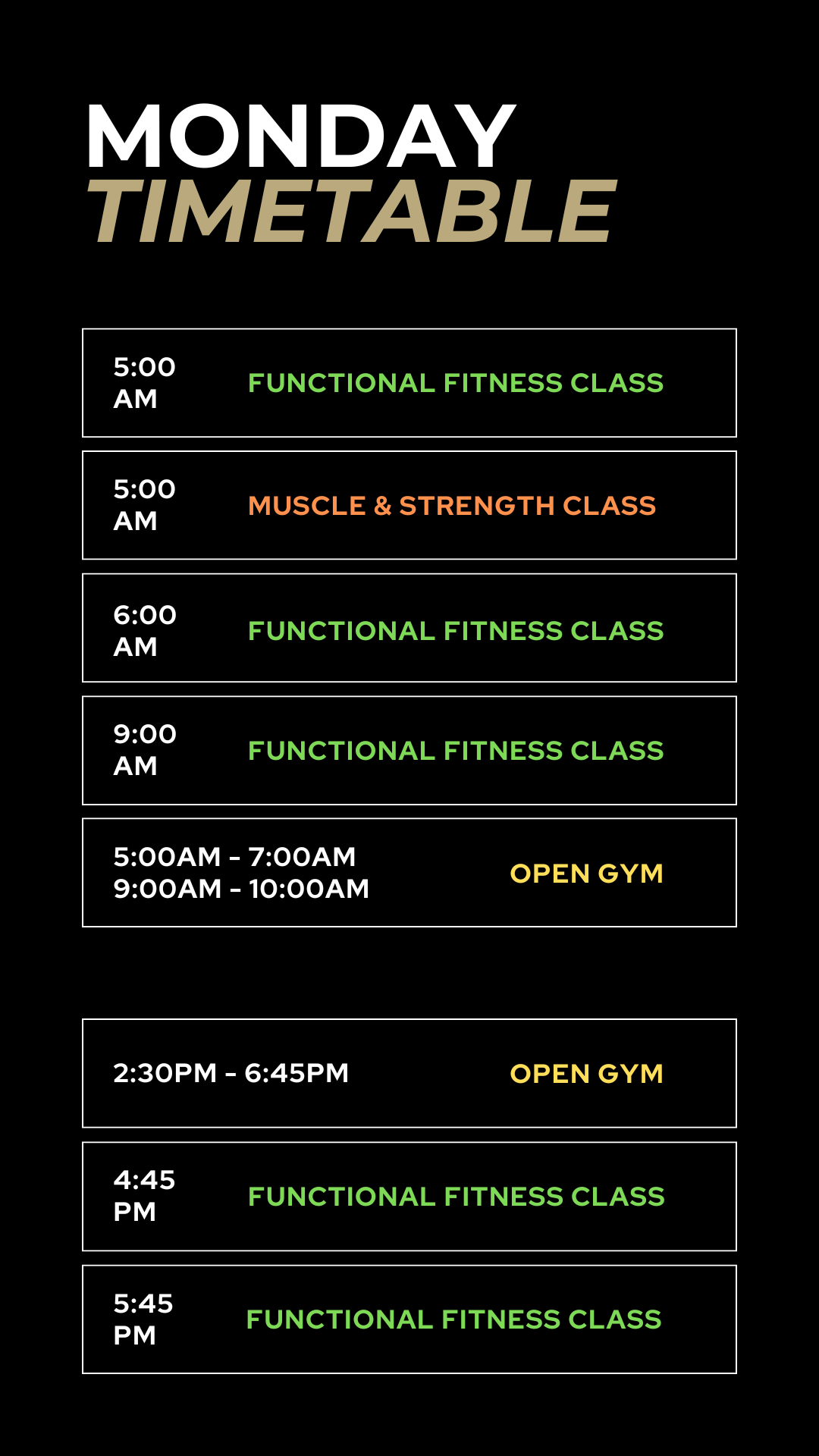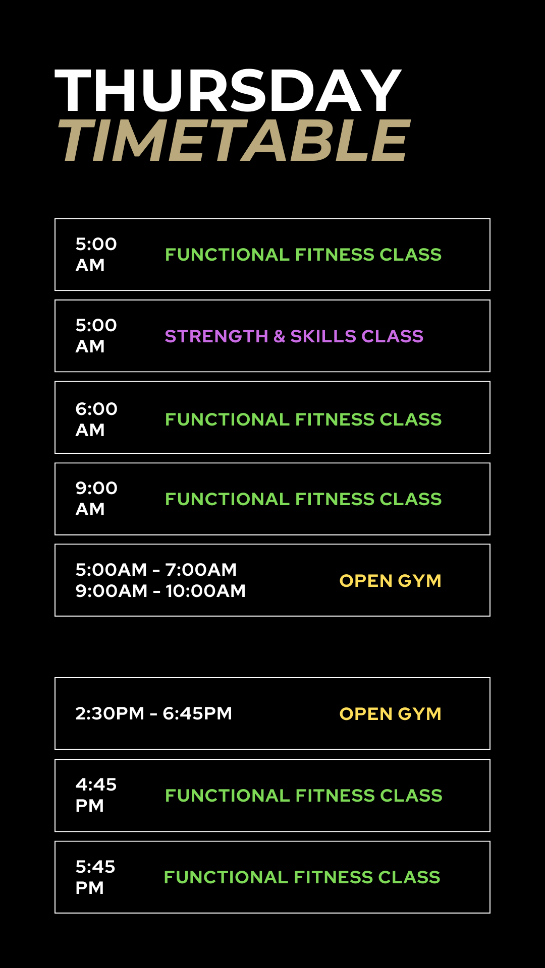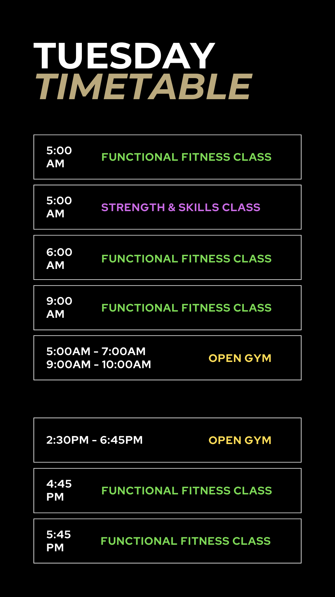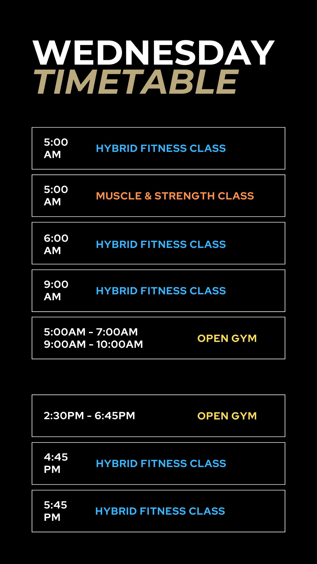 Check out our timetable for class times and opening hours